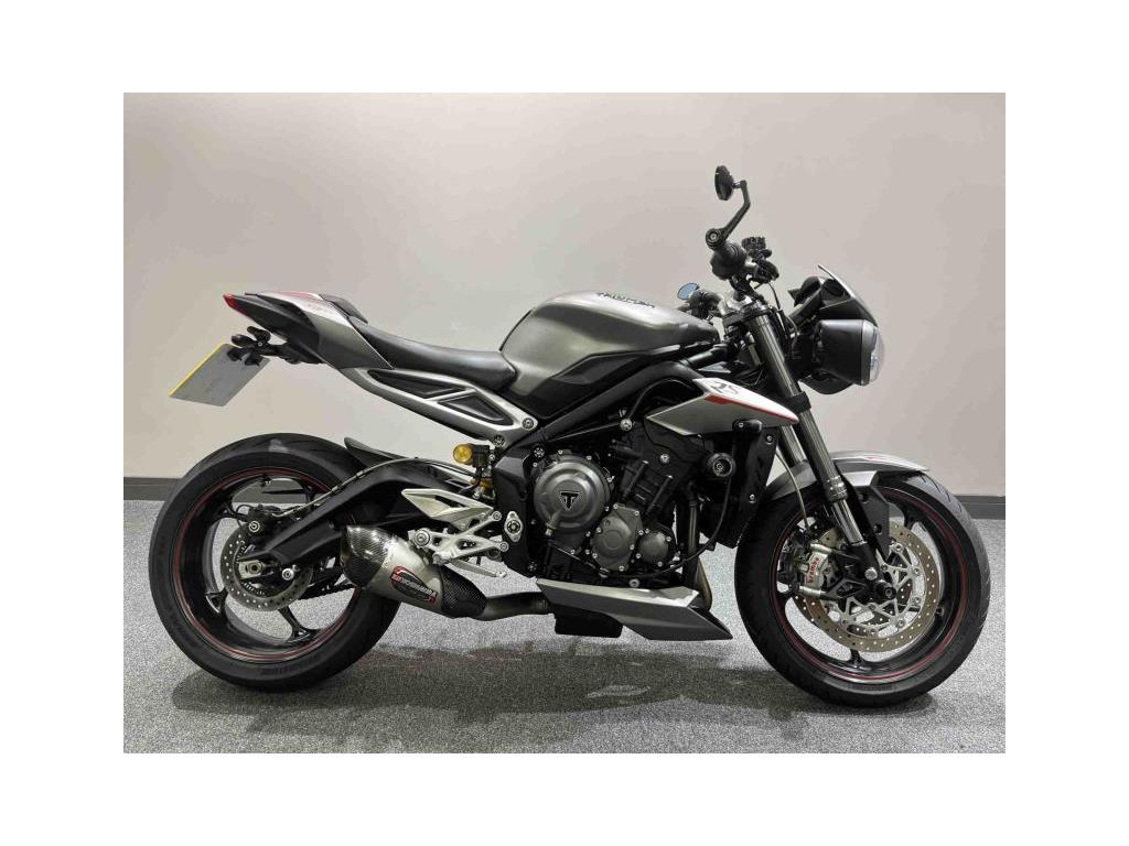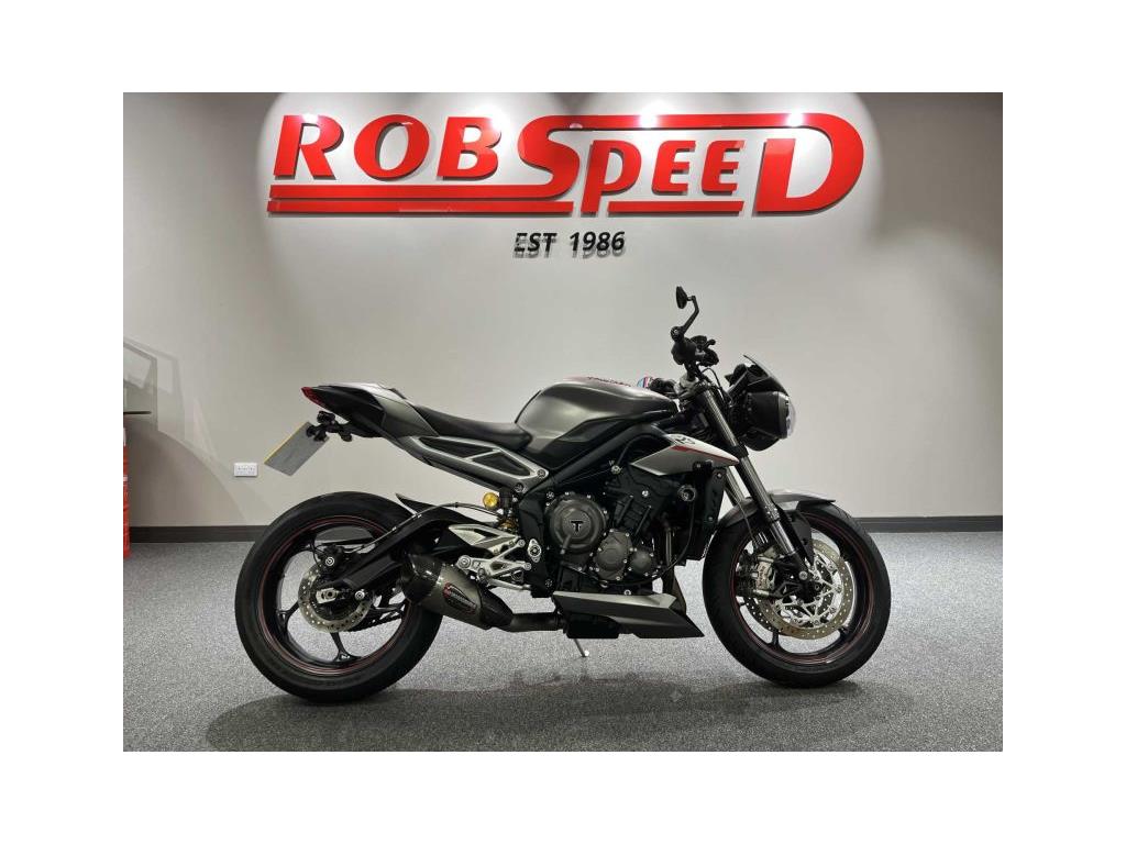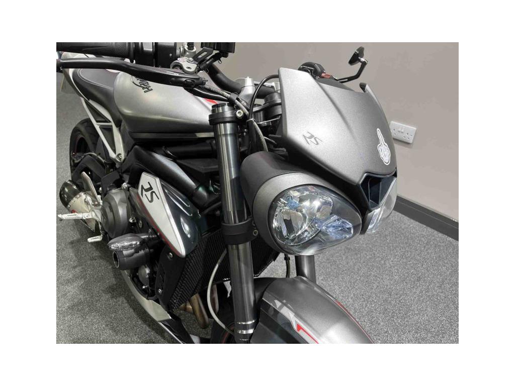 Triumph Street Triple 765 RS Registered 2017 ’17’ plate 13900 miles Yoshimura exhaust Tail tidy Radiator guard Brembo front brake master cylinder Brembo front callipers and discs Seat cowl Ohlins shock Rider modes; -rider -rain -road -sport -track Datatag Two keys Handbook and service book Good service record, six in total, valves just done