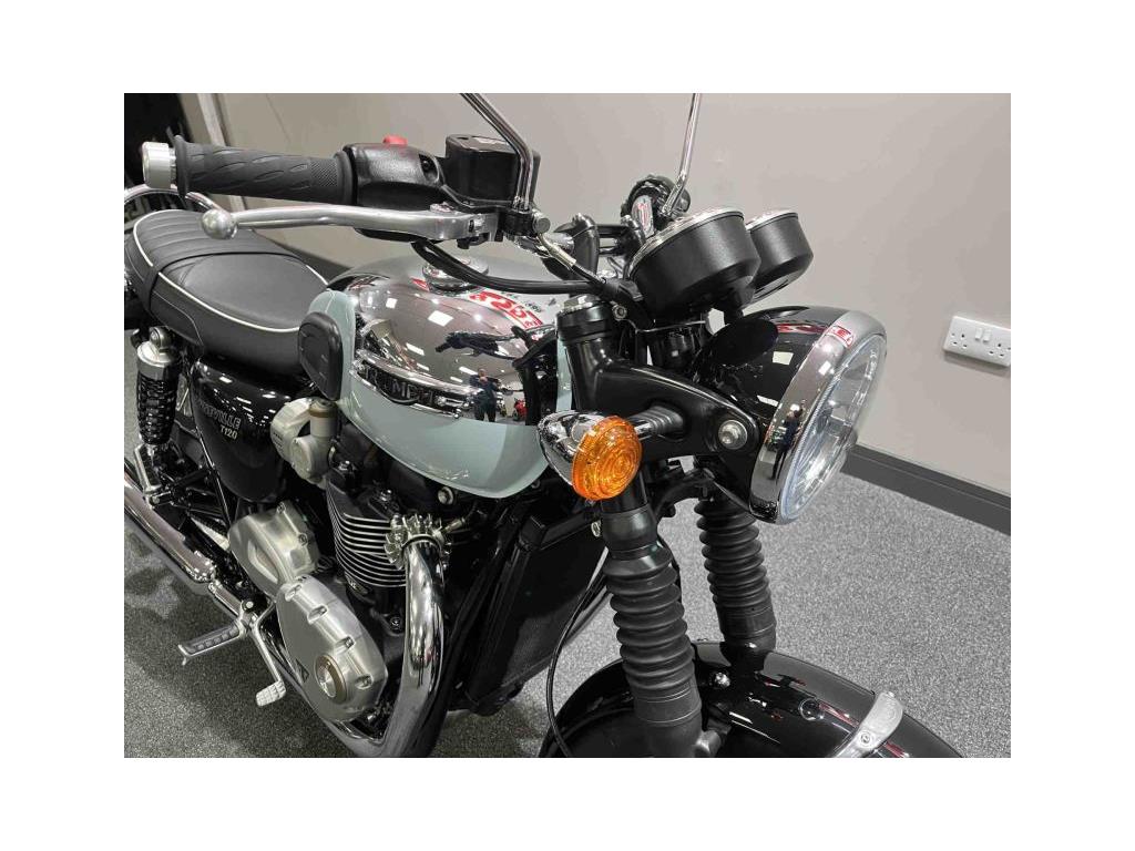 Triumph T120 Bonneville Registered April 2023 ’23’ plate 2650 miles ‘Mirror’ finish on tank Cruise control Traction and ABS Rain and Road rider modes Very good condition Datatag Two keys Handbook and service book Full service history, two in total