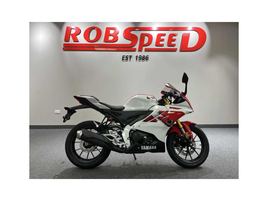Yamaha R125 70th Anniversary colour scheme White/red In stock Very limited numbers, please contact us